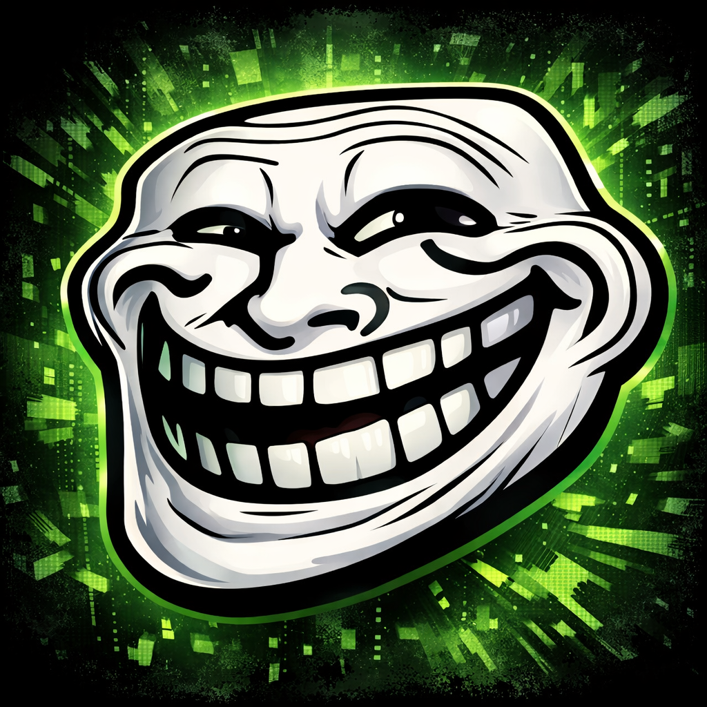 Trollface is a tribute to internet chaos — re-skinned for a cleaner, modern look. Green glow, glitch vibes, and a simple rule: keep it meme-native.